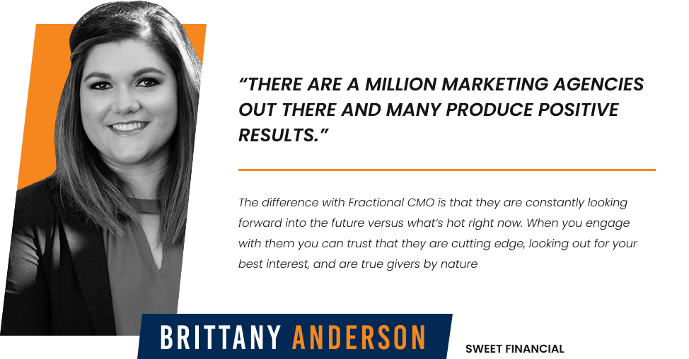 FractionalCMO (Chief Marketing Officer) was created to provide high-level executive marketing experience, advice, strategies, and resources without having to hire a full-time marketing director or work with expensive marketing agencies. At FractionalCMO, we have a team of experts, all working within their zone of genius to help YOU. Our ENTIRE TEAM of experts is here to help you level up ALL aspects of marketing, providing guidance and support every step of the way.
